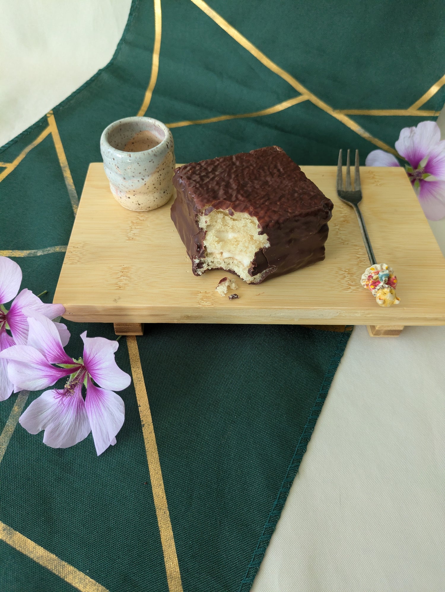 Two decadent sponge cakes sandwiching a light and fluffy handmade marshmallow all covered in a layer of silky dark chocolate. Perfect for two people to share. It's even better than the original!